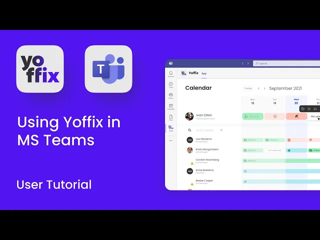 Yoffix offers perfect integration into Microsoft 365. Watch this tutorial to learn how to use Yoffix Workplace Management in MS Teams - schedule your workweek, book desks, check-in in the office and coordinate your office days with colleagues.