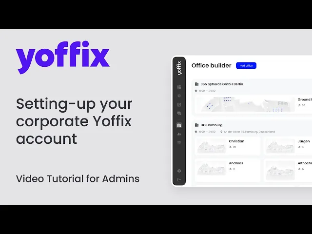 First, I'll show you how to set up your office by creating new offices, adding spaces, and uploading floor plans. Then, I'll explain how to add seats, meeting rooms, and parking spots, and customize their booking options. By the end of this video, you'll have a clear understanding of how to create different sections in your office and manage your company's Yoffix account effectively.