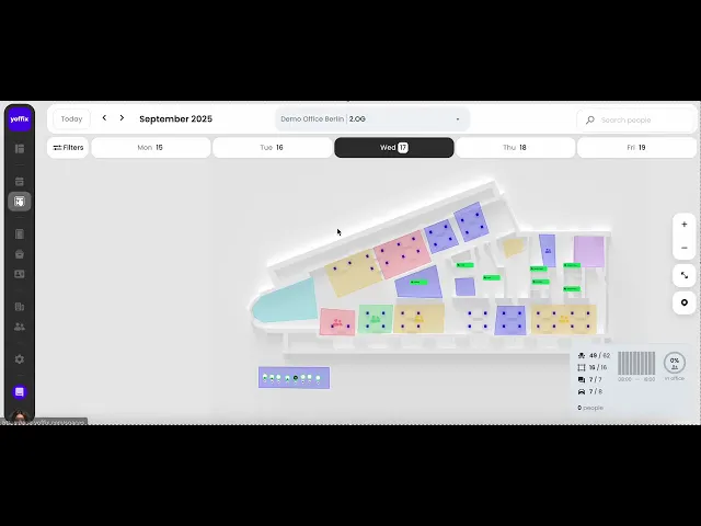 Daraufhin siehst du eine Liste der Mitarbeitenden, die dieses Attribut haben, zusammen mit ihrem Bürostatus—ob sie am ausgewählten Tag im Büro sind oder für einen anderen Tag eingeplant sind.