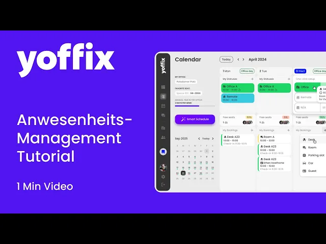Nachdem alles eingerichtet ist, können Mitarbeitende ihre Bürotage in Yoffix buchen und optional vor Ort einchecken.
