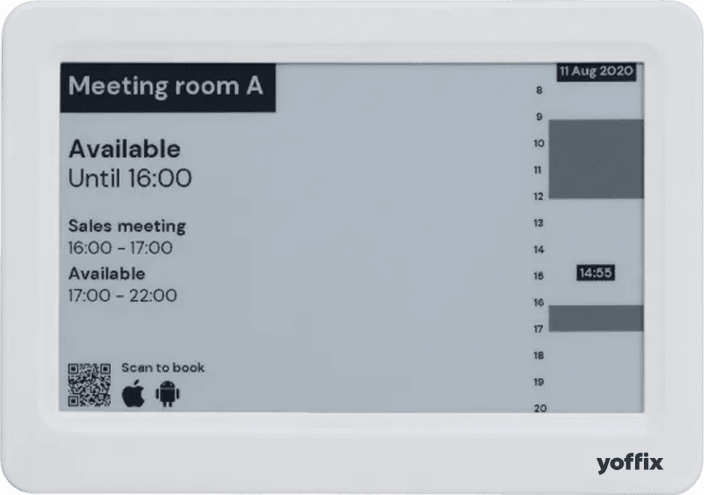 See availability or booking details in the app, on room displays, on Yoffix digital signage or kiosk