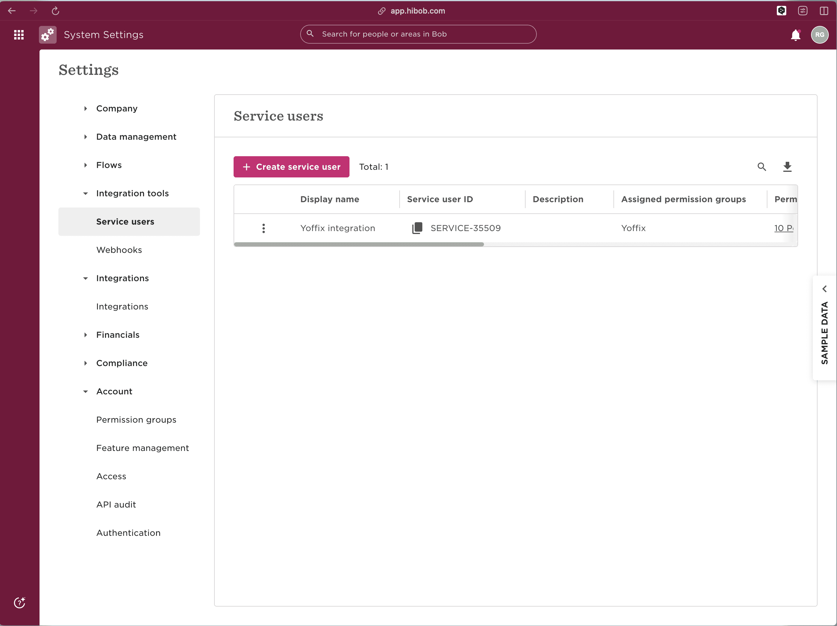 In Yoffix, go to Company settings > Integrations > User Sync > HiBob.