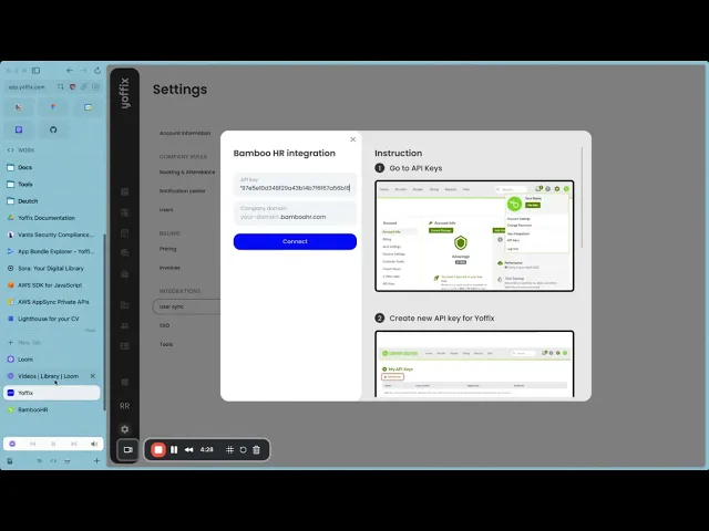With just a few steps, you can connect Yoffix to your BambooHR account and start syncing users and time-off records in real time.