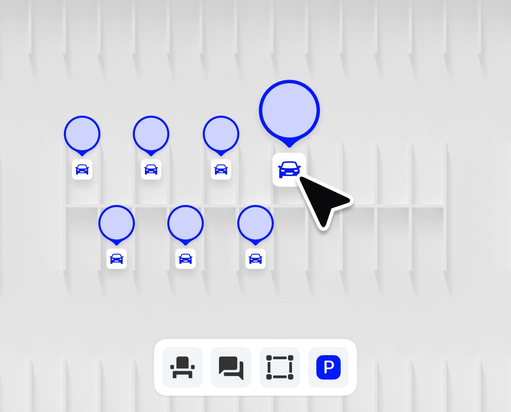 Build your parking structure in the visual editor. Configure availability rules, assign spaces to teams or individuals, and set auto-release timing for unclaimed reservations.