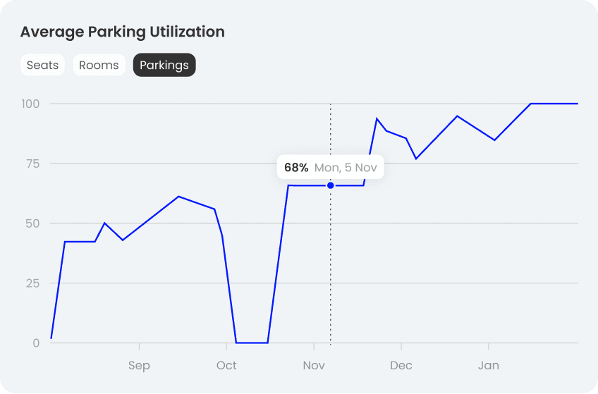 Monitor real usage patterns across your parking inventory. Identify underused areas, peak demand days, and export reports for facilities planning.