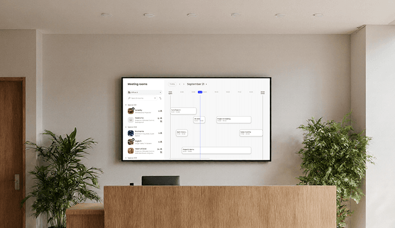 Use any smart TV to show live rooms' availability. See which spaces are free, which are booked, and plan your meetings without opening a single app.