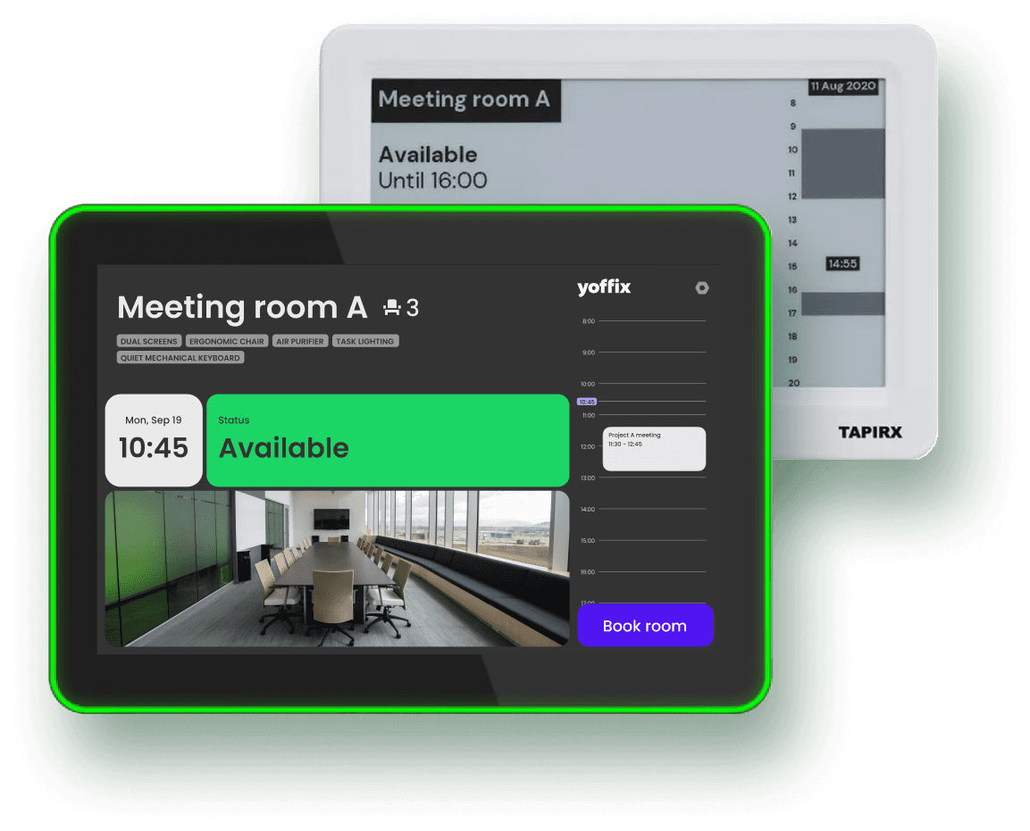 Two powerful display options fully integrated with Yoffix Room Booking.